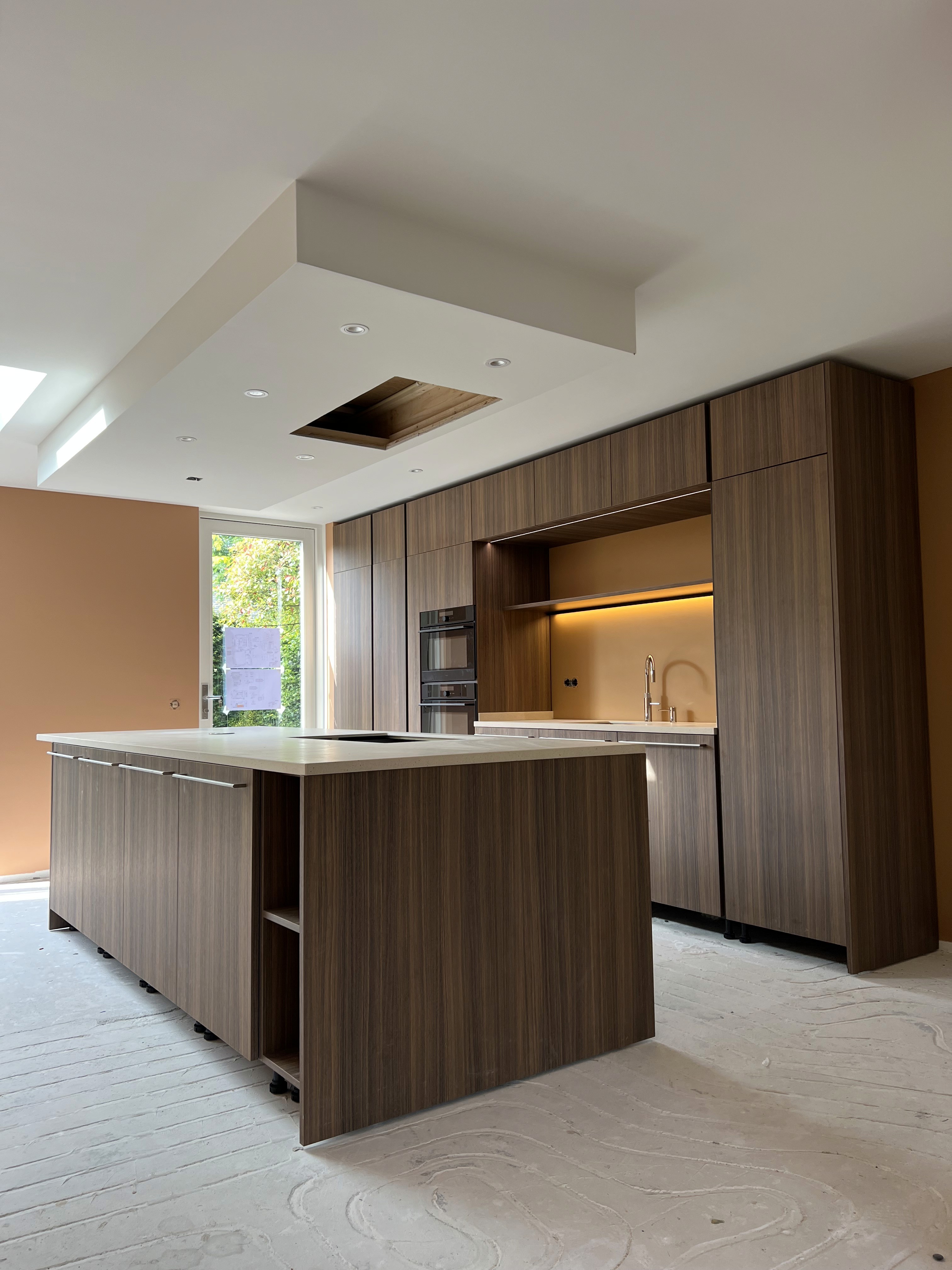 Denk aan gezinsmomenten aan de grote tafel, vrienden die aanschuiven voor een borrel, of kinderen die huiswerk maken terwijl jij kookt. Het open karakter van de woonkeuken zorgt voor meer natuurlijk licht en een ruimtelijk gevoel in huis. Door de centrale ligging vormt het een natuurlijk middelpunt.